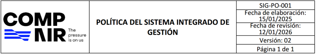 Documento Confidencial de COMP-AIR SERVICE PERU S.A.C. Se prohíbe la alteración parcial o total del documento sin previa autorización del SISTEMA INTEGRADO DE GESTION.